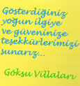 Göksu Villaların da güne marmaranın muazzam havasını soluyarak site içerisinde sabah sporuyla başlayabileceğiniz gibi isterseniz sabah spornu komşularınızla ter atarak da başlayabilirsiniz. Öğleden sonra ister bahçenizle ilgilenebilir isterseniz havuzun tadını çıkarmak için yüzebilirsiniz, Havuz sonrası gölgelikler altında bir bardak Soğuk birşey iyi gelir. Akşama doğru tüm gün oyun alanlarında sitedeki arkadaşlarıyla doyasıya eğlenen Çocuğunuz havuzda hemen gözünüzün önünde olacak..