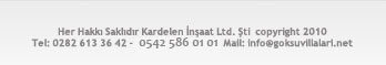 Göksu villalarında yapı güvenliği kadar ailenizin de güvenliği için tüm detaylar düşünüldü. Site çevresini saran güvenlik duvarları, 24 saat hizmet verecek görevlileri, site giriş çıkışının kontrollü bir şekilde yapılabilmesi için tek noktadan giriş çıkışın sağlanmış olması, sizin ve sevdiklerinizin %100 güvende olmasını sağlayacak önemli ayrıntılar.